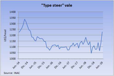 出口閹牛的價格,包括英國種和印度串種都沒有變化,最好的英國種閹牛價格保持在116-123比索/公斤,印度串種閹牛112-117比索,母牛也沒有變化,特種和良種母牛98-105,工業(yè)母牛85-88比索。