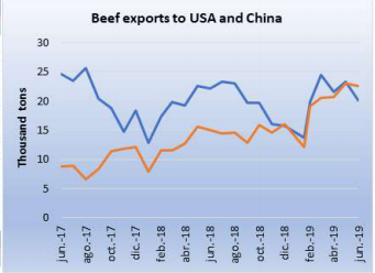 2019/20農(nóng)業(yè)年前兩周阿根廷工廠已經(jīng)發(fā)運(yùn)了1847噸希爾頓牛肉,比巴拉圭全年發(fā)運(yùn)的量還多一倍,也達(dá)到了烏拉圭配額量的30%,不過還需要觀察在國際價格下跌、對美元匯率貶值以及本地消費(fèi)減少的情況下市場會如何發(fā)展。
