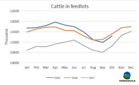 10月美國(guó)農(nóng)業(yè)局牛只存欄報(bào)告沒(méi)有巨大變化,10月1日飼育場(chǎng)存欄1130萬(wàn)頭,比一年前下降1.1%,這是年度對(duì)比中第二個(gè)存欄總數(shù)連續(xù)減少月。9月補(bǔ)欄總計(jì)209萬(wàn)頭,比2018年高2%,9月賣(mài)到市場(chǎng)的牛只共174萬(wàn)頭,比2018年增長(zhǎng)1%。2019年比去年多一天交易日。8月12個(gè)月平均存欄1160萬(wàn)頭,存欄量比上兩個(gè)月有輕微下降。Beyond Meat股價(jià)下跌22%