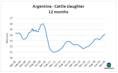 盡管受到隔離令的影響,4月阿根廷牛只屠宰量118萬(wàn)頭,較3月增長(zhǎng)8.7%。今年前4個(gè)月阿根廷牛只屠宰量達(dá)442萬(wàn)頭,比去年同期增長(zhǎng)5.2%。4月巴西美麗華集團(tuán)的Swift廠屠宰量排在首位,在2020年屠宰量排名中超過阿根廷連鎖超市集團(tuán)COTO重新成為排在第一位,COTO排在第二位。Rioplatense,Arrebeef和Gorina位列其次,分別排在第三第四和第五位。由于至中國(guó)貿(mào)易量下降隨后又恢復(fù),母牛屠宰量占48.6%,與3月屠宰量相比有所提高。