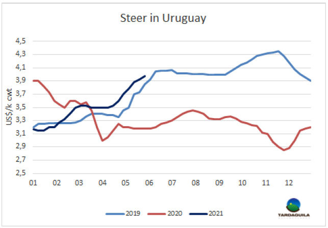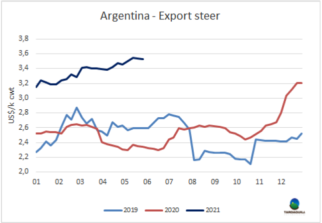 巴拉圭出口商期望智利宣布的重新開放活動能夠重新激活進口市場。目前進口商20部位全牛采購價不超過5400美元/噸,距出口商對新合同的報價低400美元/噸。