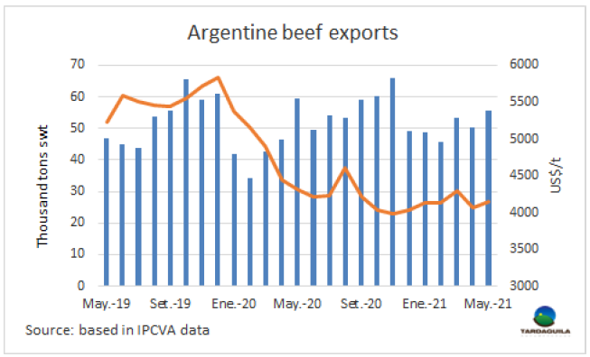盡管阿根廷限制牛肉出口,其五月牛肉出口量增長(zhǎng)了11%。