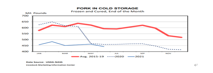 由于德爾塔變異病毒影響,市場整體低迷,消費(fèi)受限,豬肉庫存消耗緩慢,預(yù)計(jì)8月豬價(jià)持續(xù)低位徘徊。
