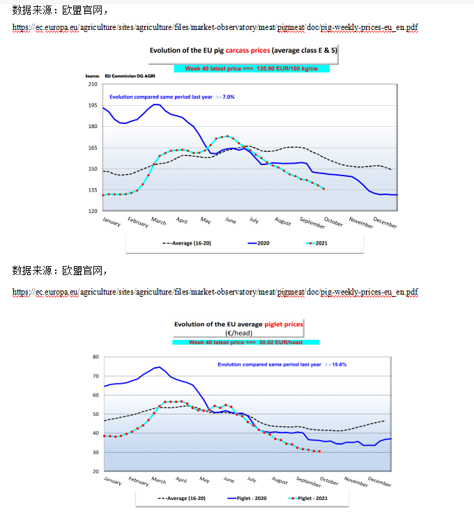 2021年歐盟9月豬胴體均價(jià)1.35歐元/kg,環(huán)比下滑4.8%,同比下滑7.09%。