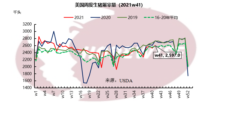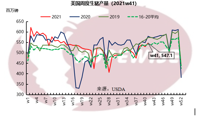 美國(guó)9月生豬均價(jià)0.83美金/磅,環(huán)比下滑15.45%,同比上漲47%。豬胴體價(jià)格1.07美金/磅,環(huán)比下滑10.47%,同比增長(zhǎng)26.97%。生豬價(jià)格處于季節(jié)性下滑階段。9月最后一周,豬各部位肉的平均批發(fā)價(jià)格與6月中旬達(dá)到的年度峰值相比下降約20%。雖然生豬產(chǎn)量有增加,仍低于去年同期水平。9月周度生豬屠宰量246.08萬(wàn)頭,環(huán)比增加2.13%,同比減少3.04%。生豬周度產(chǎn)量23.32萬(wàn)噸,環(huán)比增加1.96%,同比減少3.36%。