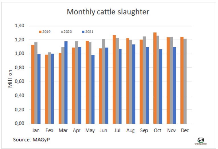 官方數(shù)據(jù)顯示,11月牛屠宰量為109.7萬頭,比上月增加3%,比去年同期減少12%。2021年前11個(gè)月,屠宰量累計(jì)達(dá)1182.7萬頭。母牛占屠宰量的44.6%。屠宰量最大的工廠是Swift(巴西Minerva集團(tuán))、Coto以及Rioplatense、Gorina和ArreBeef。