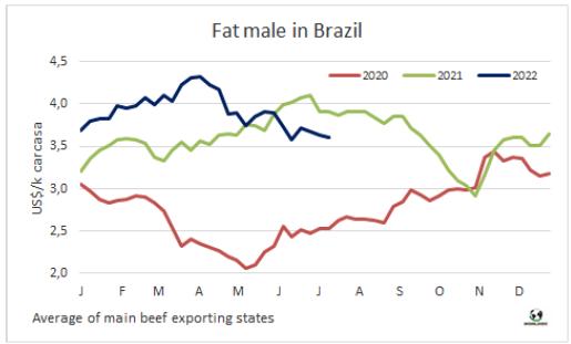 Cepea數(shù)據(jù)顯示,今年1-6月犢牛(在南馬托格羅索州出售的8-12個月)的平均體重為213.15公斤/頭。從Cepea于2000年2月開始這項調(diào)查以來的年平均數(shù)據(jù)來看,這一數(shù)據(jù)創(chuàng)歷史新高。情況表明,盡管生產(chǎn)成本很高,但巴西農(nóng)民近年來增加了改善養(yǎng)殖技術(shù)方面的投資。養(yǎng)殖的改善已經(jīng)可以通過架子牛供應(yīng)的增加以及犢牛體重增長觀察到。