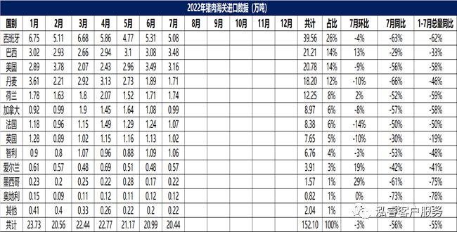 2022年1-7月冷凍豬肉進(jìn)口數(shù)據(jù)