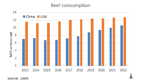 八年來,中國(guó)的牛肉消費(fèi)增長(zhǎng)了60%