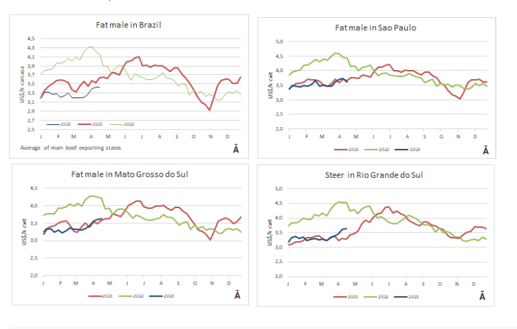 上周圣保羅州成品牛的價(jià)格有所下降,為R$/@271,但“中國(guó)牛”的溢價(jià)從上周的R$/@5上漲到本周的R$/@10。