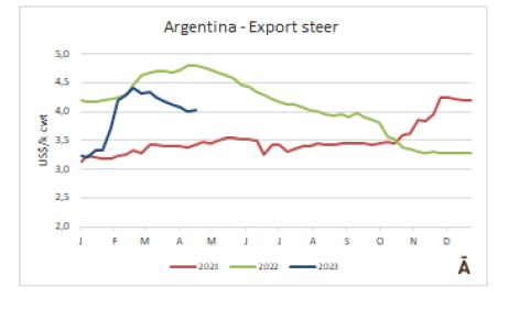 阿根廷的閹牛本周從3美分上漲至$4.4/kg cwt,這一參考包含了對(duì)牛肉出口征收9%的稅。
