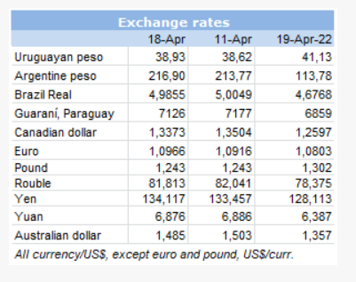 來自阿根廷的消息稱用$14800的FOB做參考,以及多$200給最好的品牌。就烏拉圭而言,一家出口商用上周的交易以$13800的離岸價(jià)成交談到了一個(gè)“穩(wěn)定的市場(chǎng)”。