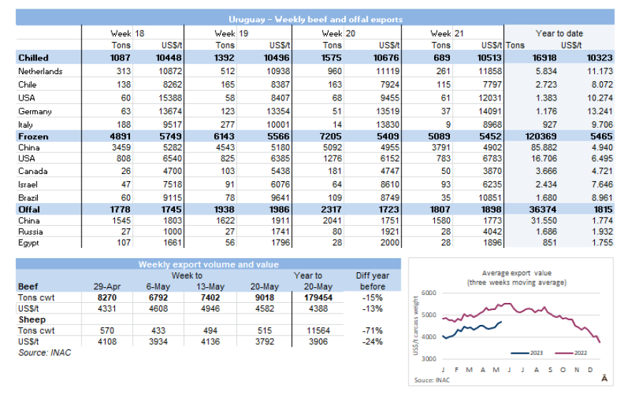 歐洲與中國(guó)市場(chǎng)情況類似,進(jìn)口商也說(shuō)他們的庫(kù)存量很大,牛肉銷售量不大。在這種情況下,希爾頓臀腰肉價(jià)格繼續(xù)向下調(diào)整。阿根廷進(jìn)口商和出口商給的價(jià)格差異很大,從12,300美元到13,000美元(FOB)的底價(jià)不等。烏拉圭的參考價(jià)格則在11,800-12,000美元(FOB)之間。