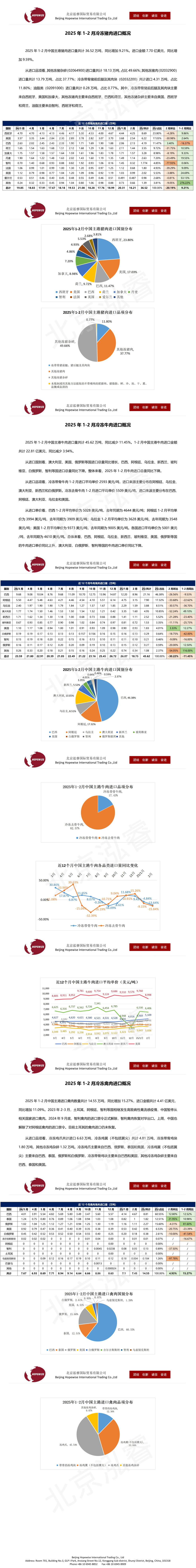 2025年1-2月冷凍豬牛禽肉海關進口數(shù)據(jù)