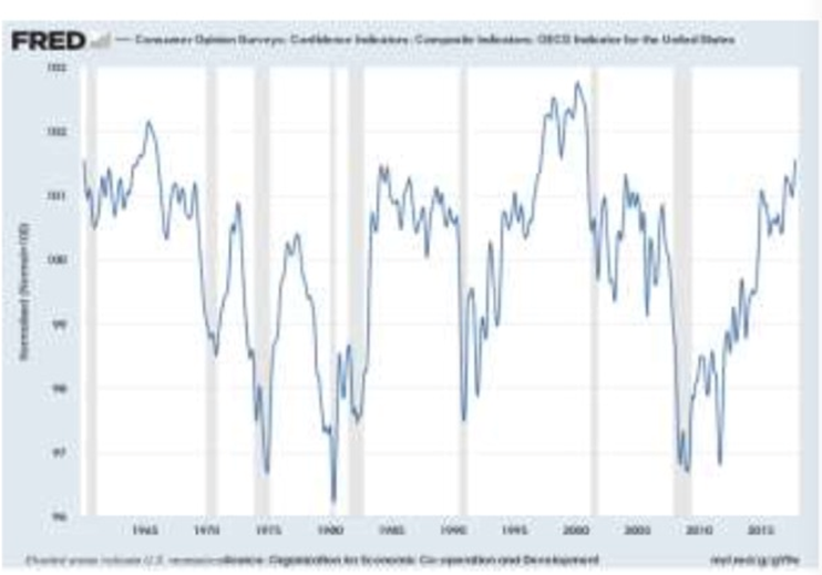 2018年全世界的消費(fèi)者信心指數(shù)很可能仍然高于100,也包括美國(guó)。中國(guó)的消費(fèi)者信心預(yù)期會(huì)非常強(qiáng)大(會(huì)遠(yuǎn)高于100的指數(shù)水平),但預(yù)期不會(huì)維持2017年的增長(zhǎng)軌跡。