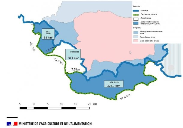 方圓78公里的“白色地帶”是離比利時(shí)最新ASF疫情最近的地方。另外第四周要建一個(gè)長(zhǎng)26.6公里的圍欄。自1月19日起,為減少ASF疫情擴(kuò)散,禁止從事林業(yè)經(jīng)營(yíng)(無論是經(jīng)濟(jì)活動(dòng)還是休閑活動(dòng))。將通過獵人、國(guó)家狩獵和野生動(dòng)物辦事處和國(guó)家森林辦事處鼓勵(lì)大規(guī)模捕獵,減少野豬數(shù)量。國(guó)家每捕殺一頭野豬補(bǔ)貼獵人100歐元。