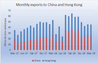 水漂貨從香港進(jìn)入中國(guó)很困難,影響到了今年第一季度巴西對(duì)香港的出口,雖然出口中國(guó)的量增加了6%,但并不足夠彌補(bǔ)香港份額25%的減少,香港第一季度只進(jìn)口了13.33萬(wàn)噸,同比減少1.5萬(wàn)噸。減少的這部分量被中國(guó)從澳洲、烏拉圭和阿根廷直接進(jìn)口的量所替代。
