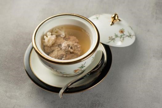 愛爾蘭牛肉清湯用到了愛爾蘭上腦芯、愛爾蘭板腱、美牛上腦三種肉類,混合打泥后隔水蒸燉,賓客們掀開蓋的瞬間,肉香四溢。