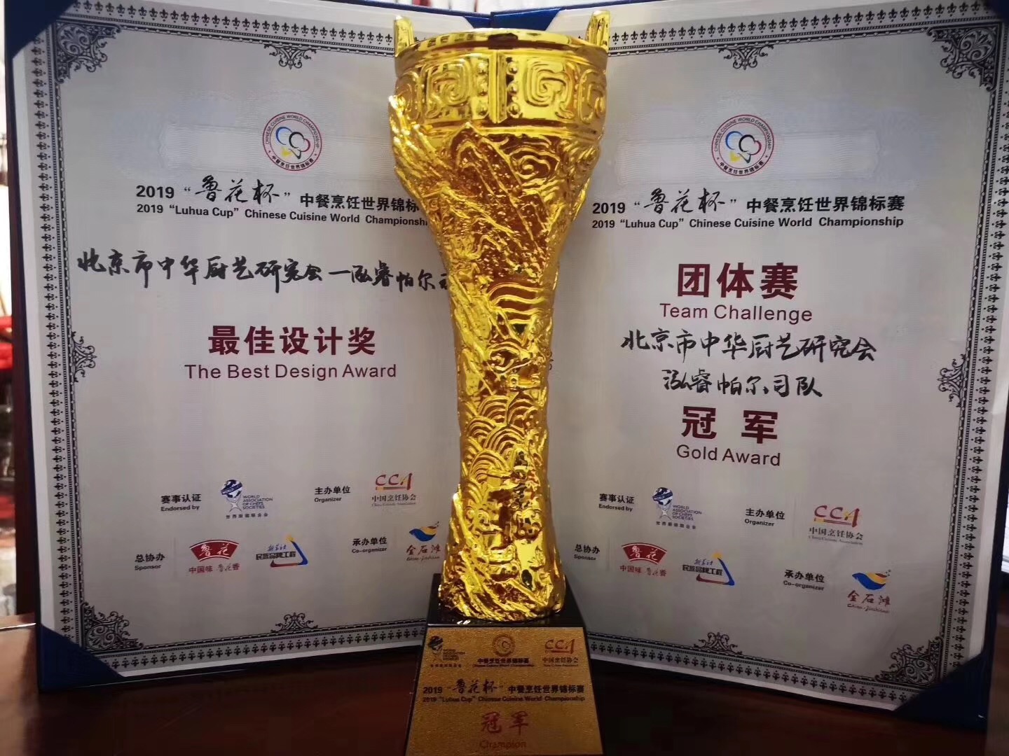 通過(guò)激烈的比賽,北京市中華廚藝研究會(huì)——泓睿帕爾司隊(duì)獲得2019中餐廚藝世界錦標(biāo)賽金牌!