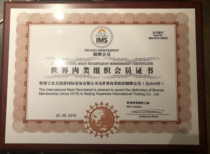 9月23日,北京泓睿國際貿(mào)易有限公司成功加入世界肉類組織并成為銅牌會(huì)員。