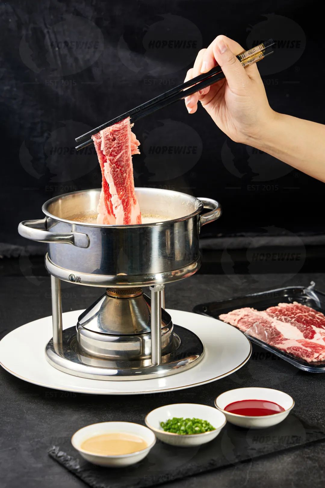 阿根廷谷飼牛前胸可直接切片涮火鍋,也可分切出中式火鍋的胸口油,瘦肉部分可用來炒制。推薦直接切片,油脂和瘦肉參半,有別于傳統(tǒng)中式胸口油,瘦肉部位肉感十足,香味濃郁,油脂部分爽口彈牙;而且裝盤美觀,更具特色;另外,從廚房操作效率及定價方面來說也更具優(yōu)勢。