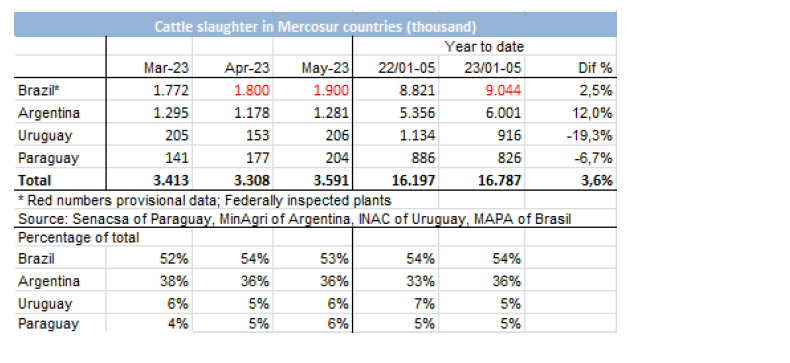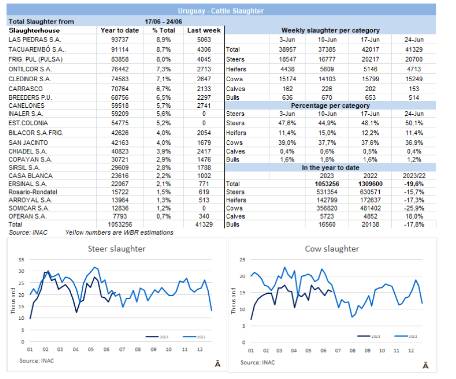 到目前為止,6月份已經(jīng)屠宰了137,357頭牛,比2022年同期減少20%。