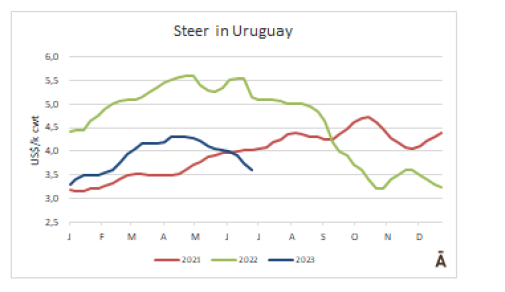 烏拉圭肥牛價(jià)格下降,小牛的價(jià)格穩(wěn)定