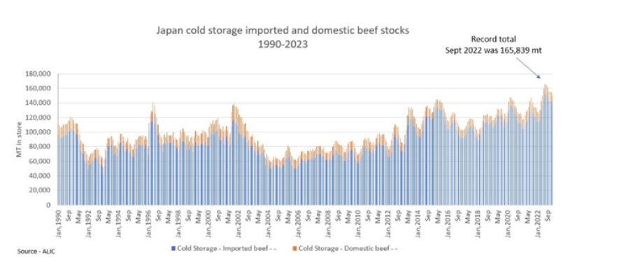 日本的最新數(shù)據(jù)顯示,隨著亞洲大量庫存的挑戰(zhàn)加劇,日本牛肉庫存走高。