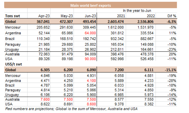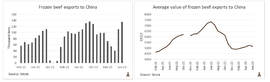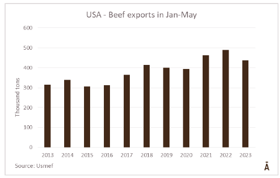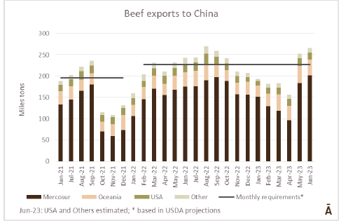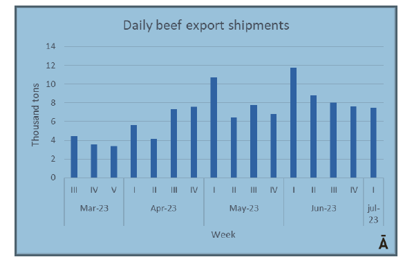 6月份對(duì)中國的牛肉出口數(shù)據(jù)顯示,出口量接近去年下半年創(chuàng)下的月度記錄,考慮到近幾個(gè)月需求的顯著疲軟,這一點(diǎn)令人震驚。