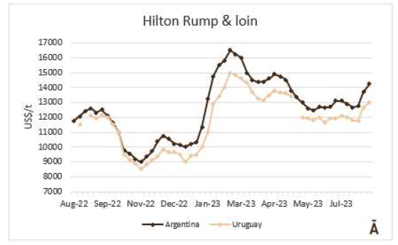 上周,希爾頓配額范圍內(nèi)的冰鮮市場再次走強(qiáng),阿根廷的臀腰肉價(jià)格在FOB 14000-14500美元之間。一位歐洲貿(mào)易商評(píng)論道:“目前,歐洲沒有足夠的產(chǎn)品,這也有助于價(jià)格上漲。此外,市場上的肉類數(shù)量有限,因此需求狀況良好?!?span>
