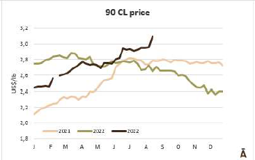 消息人士透露,在選舉之前,牛六分體的交易價(jià)格是CFR4400,牛23分體的價(jià)格為CFR4600。他總結(jié)道,這是需求低迷的一周。 另一方面,一位貿(mào)易商稱,過去一周智利帶骨牛四分體的價(jià)格一直徘徊在每噸CFR 4500美元至CFR 4600美元之間。