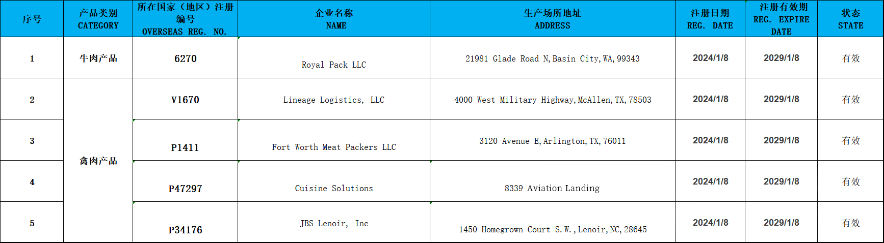 美國新增5家肉類工廠獲準輸華!