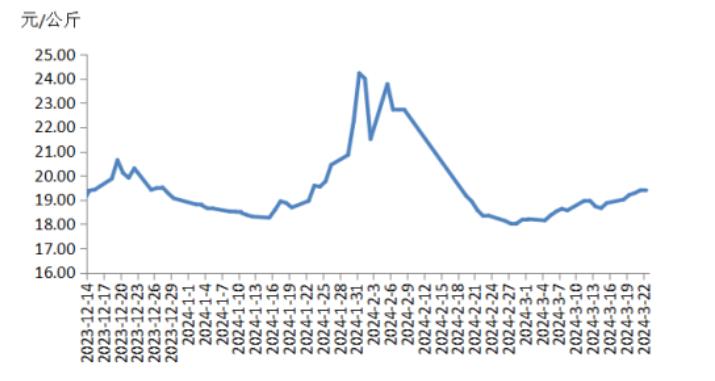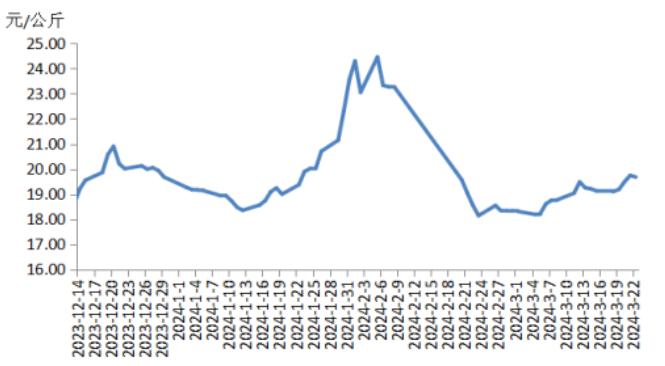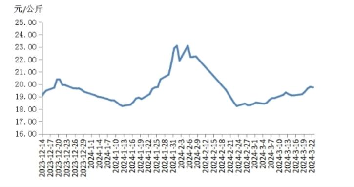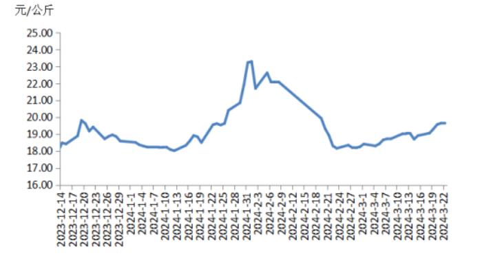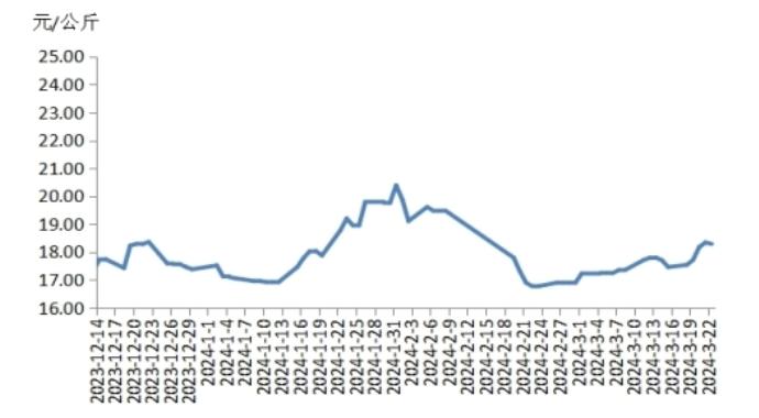 本周,廣東豬肉周均價為每公斤21.04元,環(huán)比上漲4.5%,同比上漲1.0%。周前期,本地區(qū)散養(yǎng)戶出欄生豬節(jié)奏平穩(wěn),外省調入廣東地區(qū)的豬源減少,致使本地區(qū)生豬總供應偏緊,支撐生豬及豬肉價格有所上漲。周后期,隨著豬肉價格持續(xù)上漲,終端需求趨穩(wěn)、無明顯增量,豬肉價格漲后趨穩(wěn)。總體看,本周廣東地區(qū)豬肉周均價環(huán)比上漲。