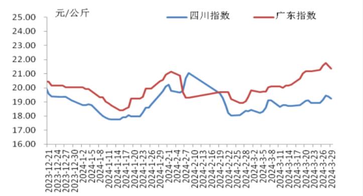 本周,四川豬肉周均價(jià)為每公斤19.24元,環(huán)比上漲1.5%,同比上漲5.9%,同比漲幅擴(kuò)大3.7個(gè)百分點(diǎn)。周前期,川內(nèi)散養(yǎng)戶出欄生豬的節(jié)奏較穩(wěn)定,但豬源外調(diào)出川的數(shù)量增多,使得川內(nèi)生豬及豬肉供應(yīng)偏緊,疊加豬肉經(jīng)銷商積極采購,推動(dòng)豬肉價(jià)格上漲。周后期,消費(fèi)市場(chǎng)對(duì)高價(jià)豬肉需求量減少,客戶訂單量減少,豬肉價(jià)格小幅回落。總體看,本周四川地區(qū)豬肉周均價(jià)環(huán)比小幅上漲。