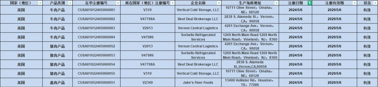 2024年5月6日新增美國(guó)9家肉類產(chǎn)品企業(yè),其中: