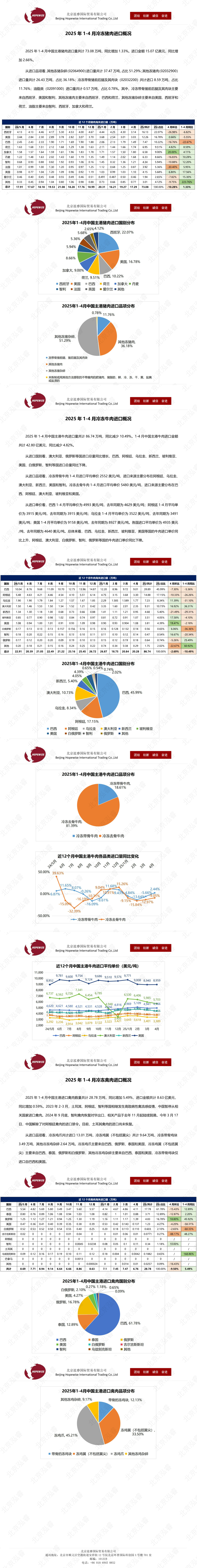 2025年1-4月冷凍豬牛禽肉海關進口數(shù)據
